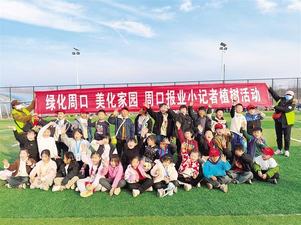 本报讯 绿化周口,美化家园。3月10日,100多名周口报业小记者走进淮阳新陆春天营地参加植树活动,用实际行动为大地增绿、为环境添彩。