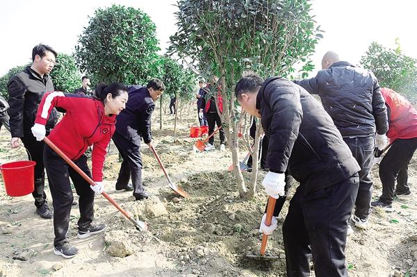 3月12日,群众在中心城区环湖北路植树点参加义务植树活动。当日是全国第46个植树节,我市社会各界群众纷纷开展义务植树活动,为创建国家森林城市增绿添彩。记者 王映 摄