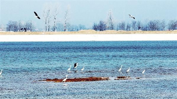 3月12日,引江济淮郸城配套工程水库波光潋滟、白鹭纷飞。据悉,2023年年底,郸城县引江济淮配套工程项目在全市率先达效,让广大群众喝上了长江水。记者 徐松 摄