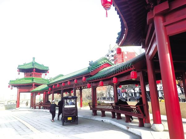 昨日,几名市民在沙颍河湿地公园双连亭休憩。近年来,我市不断加大沙颍河沿岸的生态立体改造力度,提高市民幸福指数。 记者 沈湛 摄