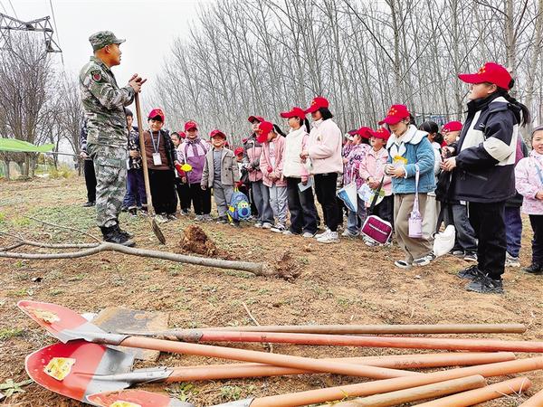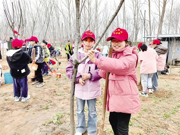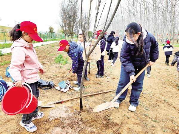 3月17日上午,“相约春天”植树活动在沙河湾湿地公园举行,130多名周口报业商水县小记者参加。小记者分工协作、密切配合,挥锹铲土、扶苗填坑、灌溉浇水,认真完成每一个环节,展示了高涨的劳动劲头和绿化热情。经过大家一番辛苦劳作,150多棵红叶李树苗在这片土地上“安家落户”。有的小记者把制作好的心愿卡认真地挂在树上,希望“与小树一起成长”。此次活动,不仅锻炼了小记者的动手能力,还增强了他们的环保意识。