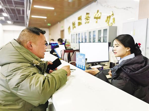 走进便民服务中心一楼大厅,白底红字的志愿者服务站标识格外醒目,市民在这里可以免费使用老花镜、使用便民雨伞、给手机充电、咨询业务等。大厅内摆放有白色排椅,来办理业务的市民可以坐在这里等待。市民张先生是搬口街道杨寨村村民,当天来咨询关于老人高龄补贴的相关事宜。在工作人员的耐心讲解下,他很快弄清了需要准备什么材料、如何快速办理等问题。“便民服务中心真的很便民,这里离我家近,走几步路就过来了。”张先生说。