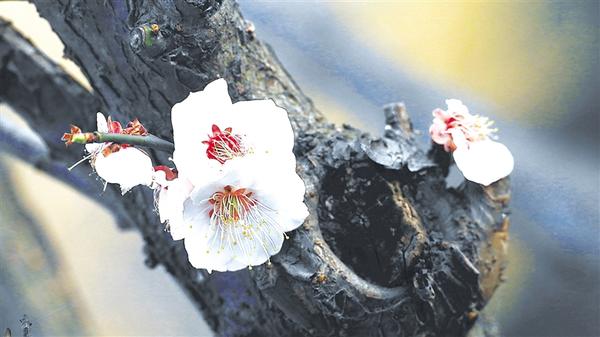老树新梅。