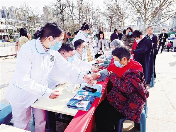 3月21日,医护人员为市民免费测量血压、血糖。今年3月24日是第29个世界防治结核病日,宣传主题是“你我共同努力、终结结核流行”。为进一步加大结核病防治宣传力度,提高群众对结核病的认识水平,3月21日,市卫健委组织市疾控中心及我市24家医疗机构在五一文化广场开展世界防治结核病日义诊宣传活动。记者 郑伟元 摄