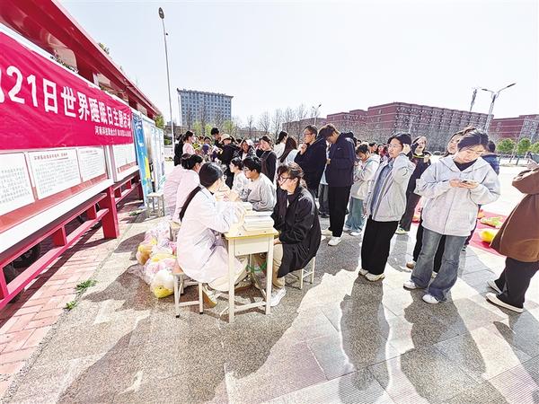 3月21日,周口市第六人民医院医护人员走进河南科技职业大学开展义诊活动。当日是世界睡眠日,今年的主题为“健康睡眠 人人共享”。活动现场,医护人员为学生答疑解惑,并发放健康手册300余份。③2记者 韩瀚 摄