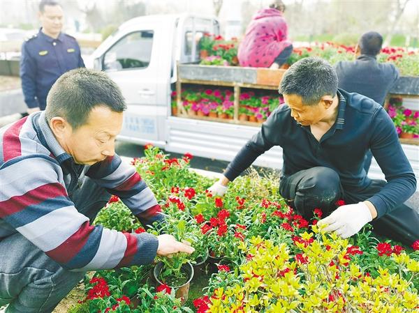 “此次道路彩化提升,我们计划购买3万余盆花卉,选用花期比较长、色彩鲜明的美女樱、花叶菊等品种。后期我们将根据天气情况,去掉残花,并做好浇水、保洁等日常管护工作,给广大市民朋友带来良好的视觉享受。”市城乡一体化示范区综合执法中心副主任张英说。②22