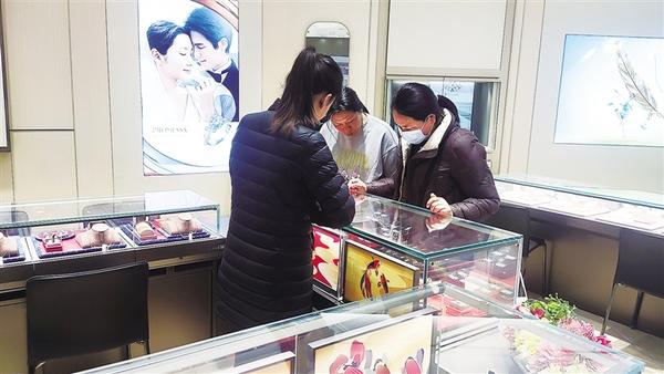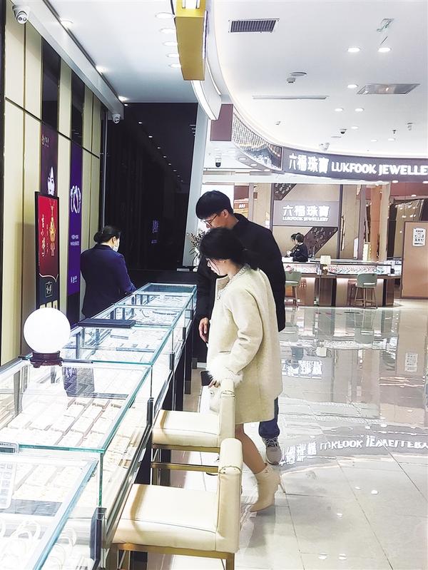 每年5月份是结婚高峰,受结婚买金习俗影响,不少新人提前购买黄金饰品。在大庆路一家黄金专卖店,工作人员告诉记者,现在很多新人喜欢购买大克重的龙凤镯,既有寓意,又能保值。“黄金是爱情的见证,黄金饰品已成为结婚必备物品,虽然目前金价偏高,但大家买起来毫不犹豫。”