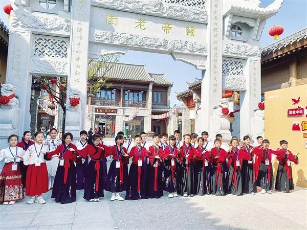 本报讯 3月31日,清明节来临之际,一场特别的活动在关帝老街举行。一群身着传统服饰的小记者们,在这里开展了一场主题为“缅怀先烈,传承文化”的诵读活动。他们用稚嫩而坚定的声音,朗诵着一首首关于清明节的古诗文,表达对历史的尊重和对先辈的怀念。