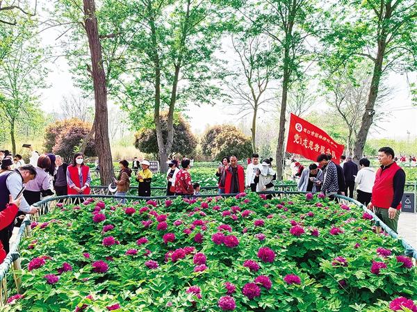 本报讯 近日,周口植物园内2万多株牡丹盛开,吸引众多市民前来欣赏。为进一步弘扬志愿服务精神,市园林绿化中心志愿服务队持续开展“牡丹花开 文明共赏”志愿服务活动,分批在牡丹园里进行游玩引导、文明劝导、维护秩序、应急帮扶等,争当“护花使者”,营造文明和谐的赏花游园环境。