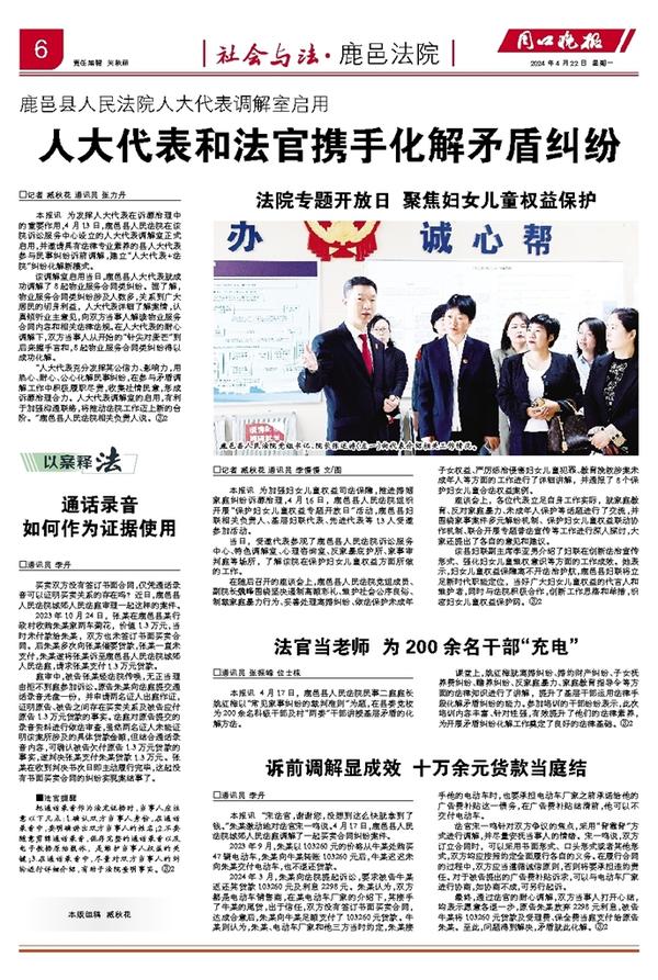 本报讯 4月17日,鹿邑县人民法院民事二庭庭长姚红梅以“常见家事纠纷的裁判准则”为题,在县委党校为200余名科级干部及村“两委”干部讲授基层矛盾的化解方法。