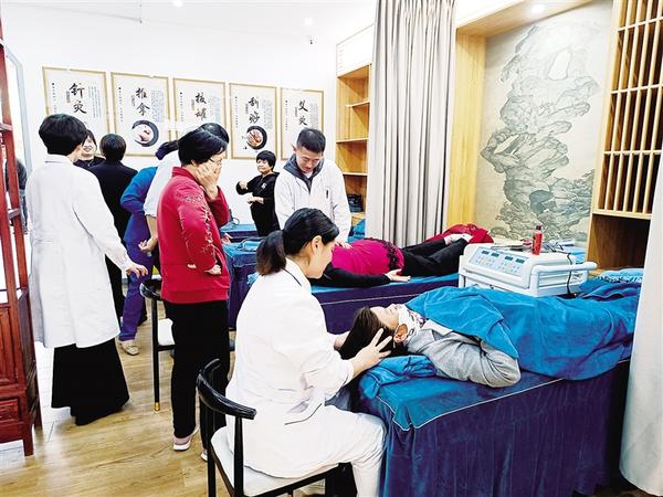 4月17日,社区居民体验中医理疗项目。当日,川汇区中医院高庄社区中医馆开馆,这是该院今年设立的第五家中医馆。中医馆的设立,让社区居民在家门口就能享受到优质的中医药服务。③2记者 郑伟元 摄