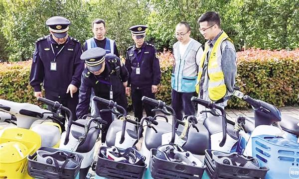 4月23日下午,记者在中心城区重点路段看到,城管执法人员正组织共享单车运营企业管理人员对主次干道两侧的共享单车停放情况进行全面排查,指导运维人员及时整改车辆脏、头盔缺失、乱停乱放等问题,督促共享单车运营企业对停放点位内超额停放的车辆进行科学调度。