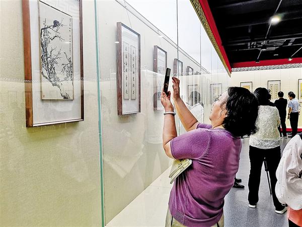 记者在书画展现场看到,100件参展作品妙契自然之道,凸显“翕然妙合”主题,不仅在作品之中望见两位艺术家对墨色结合、视觉表现力与古意韵味融彻的探索,更能从中看到他们深远的民族精神和家国情怀。