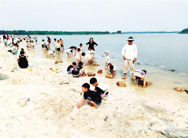 5月5日,中心城区引黄调蓄工程白沙滩热闹非凡。这里的阳光、沙滩、湖水等,让人仿佛置身于海南三亚,被市民称为“小三亚”,不少家长纷纷带着孩子前来游玩。记者 沈湛 摄