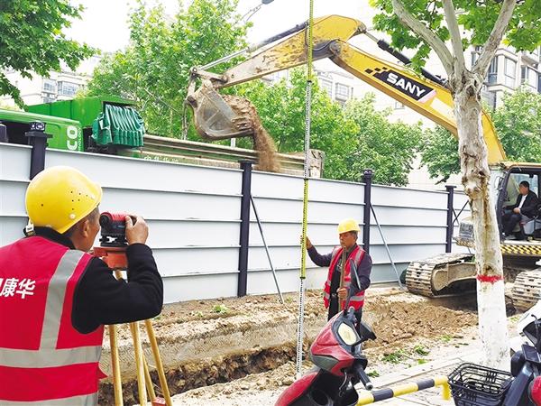 5月5日,市政部门组织人员对市城乡一体化示范区府汇街的排水系统进行升级改造。夏季雨水增多,市政部门提前施工,确保市民雨季出行顺畅。