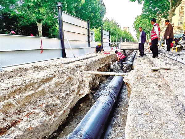 5月9日,市城乡一体化示范区府汇街下水道升级改造工程管道铺设完毕,进入修整下水道井口阶段。夏季雨水增多,为确保市民雨季顺利出行,市政部门利用近段时间晴好天气,加班加点,紧盯工程进度,确保工程如期完工。记者 沈湛 摄