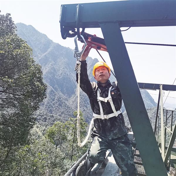 “索道维修被人戏称为‘三高’工作。”李建华说,一是高空作业,要爬到十几米甚至二十几米的支架上去检查轮轴有没有安全隐患,要在高空中听轴承有没有杂音,从而作出安全应对举措;二是高难度作业,高空操作需要具备极强的心理素质,克服恐高心理;三是高温作业,尤其是夏季,每次高空作业,浑身都会湿透,这很考验人的耐力。