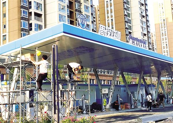 5月12日,顺和家园“光储充放检换”一体化多功能充电场站正在建设中。该站是我省首座集光伏、储能、液冷超充、电池检测等服务于一体的多功能充电场站,计划配备充电车位84个。记者 沈湛 摄