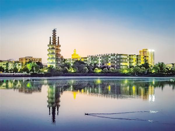 华灯初上的老君塔。