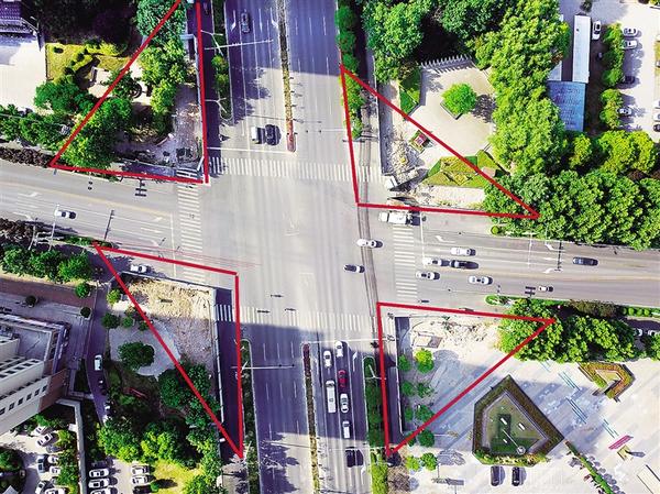 5月17日,中心城区庆丰路与周口大道交叉口4个临时施工隔离区已经布置完毕,东北角的导流岛开始施工。市政部门为提高道路通行能力,保障车辆和行人安全,对该路口进行升级改造,为市民提供更加舒适便捷的出行环境,提升城市品质。记者 沈湛 摄