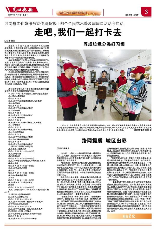 为办好此次服务宣传周活动,全市文化馆紧扣主题,结合群众需求,积极进行策划,开展丰富多彩的文化活动。其中周口市文化馆将推出2024年周口市文化馆成人春季公益艺术培训、周口市“艺周到”市民夜校、周口市文化馆特色展览、周口市文化馆文艺演出四大板块16场活动。②22