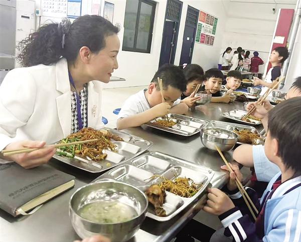 在陪餐环节,家长代表走进班级和孩子们共进午餐,了解学生在校完整就餐流程、用餐规则,品尝菜味。