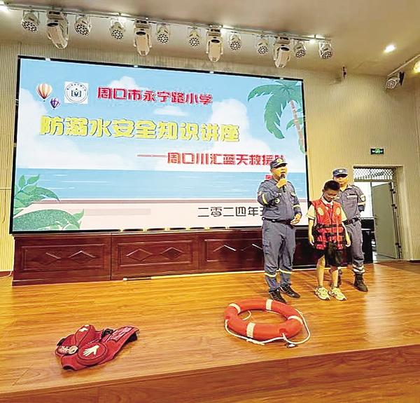 5月17日,周口市永宁路小学举行“珍爱生命 远离溺水 从我做起”宣誓暨签名仪式。周口川汇蓝天救援队救援人员向师生传授了溺水后的自救方法。