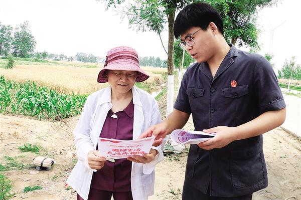5月21日,沈丘县人民法院范营人民法庭干警(右)走进乡村田间地头,向群众普及土地承包、婚姻家庭等方面的法律知识,用实际案例解析法律条文,增强了群众的法治观念。③2通讯员 马子惠 周慧慧 摄