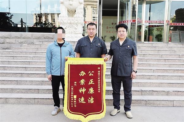 本报讯 “张法官,感谢您帮助我们公司要回了欠款……”近日,浙江某资产管理有限公司总经理朱某某将一面写有“公正廉洁 办案神速”字样的锦旗送到了项城市人民法院承办法官张晓峰的手中。
