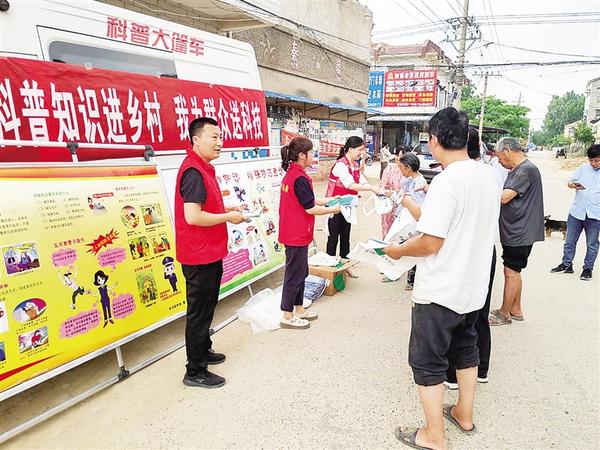 本报讯 5月27日上午,在2024年全国科技活动周期间,周口市气象局携手周口市科协以及扶沟县科协共同开展“千乡万村气象科普行”活动。科普志愿者奔赴扶沟县固城乡秦岭村,为村民送上气象科普知识“大餐”。