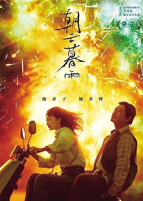 《朝云暮雨》讲述了老秦(范伟饰)服刑27年后出狱,只想娶妻生子,开启新的人生,却意外结识同样刚出狱的女孩常娟(周冬雨饰)。他求子,她求财,“同是天涯沦落人”的两人开始了一段各怀目的的利益婚姻。《朝云暮雨》改编自真实故事《穿婚纱的杀人少女》,正是原著的名字吸引到了张国立,让他有了当导演的冲动。“故事比名字更要生动深刻得多,人生无常,常娟和老秦的日子也无常。故事更深刻的地方是,人生除了生和死没别的大事。”张国立说。