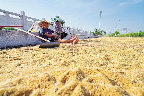 笔者来到周口中心城区近郊,看到一片片金色的麦田,回想起中学时代,大家在老师的带领下拿着镰刀到近郊帮助农民收割麦子的场景。那时麦收时间长,是一年中农民最辛苦的时候。现在大都是机械化作业了,只有联合收割机不能到的田边地头,人们才用镰刀收割。③2