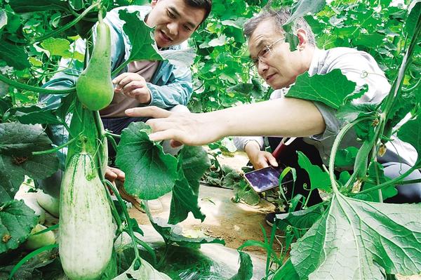面对儿子的“数落”,牛国增面带微笑,不回一句。他年已七旬,不知不觉间,从家里的绝对权威位置滑落下来,成为慈祥的老父亲——儿子已经成长起来了!羊角蜜、奶油吊瓜、彩虹西瓜……生物制剂、绿色有机、以螨制螨……从选品到种植管理,儿子说的都让他耳目一新。自己种了几十年的瓜,就是没有儿子种出来的甜、脆。