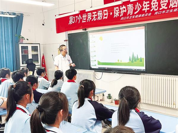 当日下午,周口市卫健委组织川汇区卫健委工作人员和周口市人民医院呼吸科专家走进周口市实验学校,开展控烟科普知识宣传。专家通过PPT展示等方式,围绕吸烟对呼吸道健康的影响、二手烟对青少年造成的危害、如何戒烟等方面,为学生上了一堂精彩的健康科普常识课。