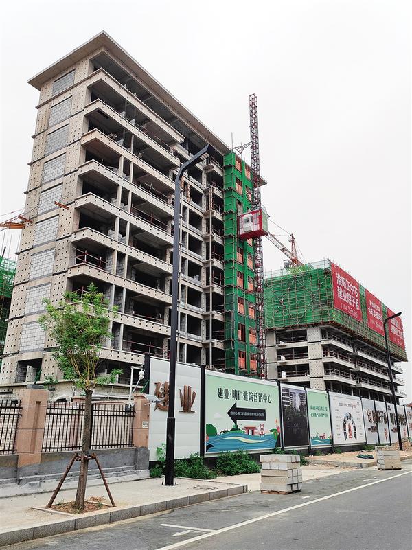 6月5日下午,建业明仁雅院项目工地上,一派热火朝天的施工场景。第一排2栋洋房主体已经竣工,进入二次结构施工阶段,后面5栋洋房和2栋高层处于主体工程施工阶段。在地面钢筋作业区,工人忙得不亦乐乎;空中,塔吊摆臂,运料繁忙;被防护网围着的楼体内,不同工序同时进行中……在200余名工人的努力下,7栋楼正“拔节生长”,一天一个样。
