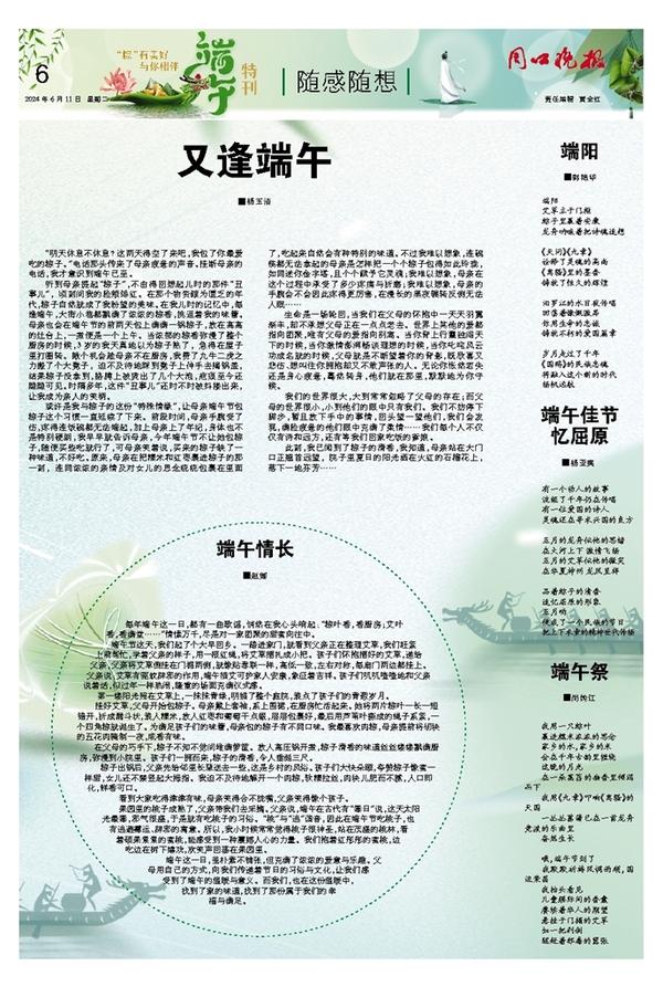 每年端午这一日,都有一曲歌谣,悄然在我心头响起:“粽叶香,香厨房;艾叶香,香满堂……”情愫万千,尽是对一家团聚的甜蜜向往中。