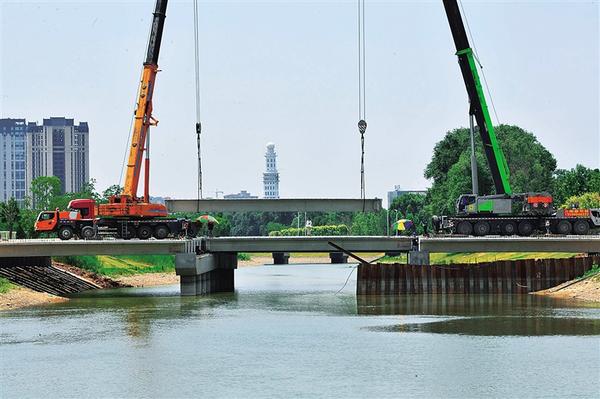 6月14日,神农路跨洼冲沟桥合龙,标志着神农路(周口大道—天山路段)通车又向前迈进一步。该路段于2023年5月开工,是华耀城区域路网建设的重要组成部分,也是我市打造华耀城商贸区的配套工程。记者 梁照曾 摄