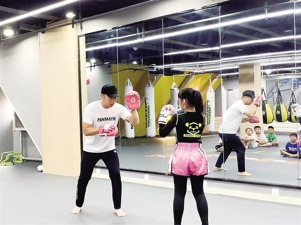 经过简单训练,小记者戴上拳套,认真练习打沙袋。直拳、勾拳……小小拳头却有着惊人的力量,小记者练习热情极为高涨。