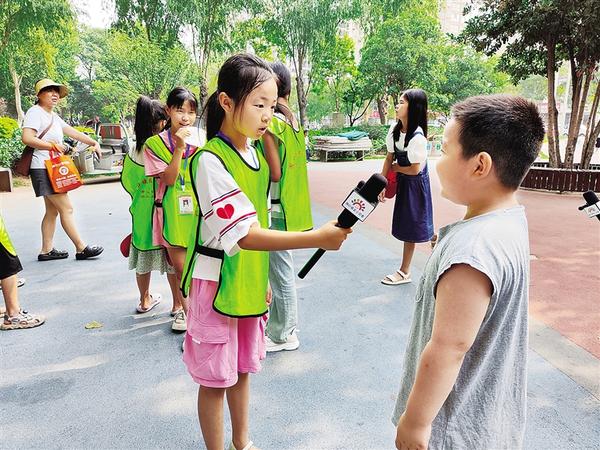 本报讯 学采访,练胆量。6月15日,两组周口报业小记者分别走进周口人民公园、文昌万达广场,参加小记者采访活动。