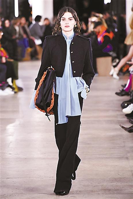 剧中,职场新人黄亦玫整体造型时髦,服饰色彩活泼亮丽,而她的上司万茜的职场穿搭低调保守,色彩以大地色为主。事实上,纵观今年国际秀场,“智性穿搭”的职场穿搭造型丰富,不同年龄、不同职位的职业女性都能找到适合自己的穿衣灵感。比如LV巴黎时装周的春夏秀场,重头戏造型以黑白两色为主调,灰度中性色条纹图案作为调剂,将职场女性的优雅、专业表达得更为经典与复古。一贯偏好硬朗风的纪梵希,其秀场上也出现了温柔的灰色毛呢套装,女性的书卷气质被表现得淋漓尽致。