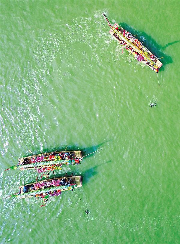 龙舟赛是我国传统的民俗体育项目,是国家级非物质文化遗产,在我市有着悠久的历史,深受广大人民群众喜爱。周口的赛龙舟活动源于明末,盛行于清光绪年间,活动内容有龙舟竞速、翎船捕鸭、水上拔河等传统项目。作为我市群众体育活动的精品项目、亮点项目,龙舟精神也成为了周口人民勤劳勇敢、奋发向上的时代象征。③2