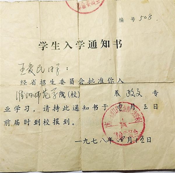 父亲担心我高考落榜了心理承受不了,劝阻我说:“不要好高骛远,知识分子的境遇不见得比工人阶级好,还是当一名本分的工人,学点技术,比啥都强。”我知道,父亲经历的时代,在他心里留下了深深的烙印。1977年12月份,我参加了“文革”结束后的首届高考。1978年4月,我收到淮阳师范学校录取通知书,并没有去报到,我想向更高层次迈进。1978年7月,我再次参加高考。功夫不负有心人。不久后我收到河南省中医学徒班的录取通知书,那是河南省卫生厅在全省高考上线的考生中选拔500名中医本科五年制以师带徒学生。