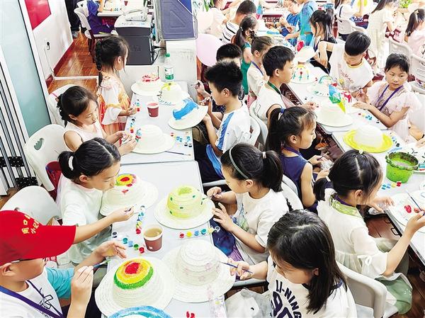 6月22日下午,60多名周口报业小记者在神墨艺术文昌校区参加了“缤纷夏日 ‘帽’美如花”小记者草帽DIY活动。活动中,小记者人手一个草帽,他们利用手中的颜料与画笔自由自在地进行创作,尽情发挥自己的创造力。 孙关鑫 摄