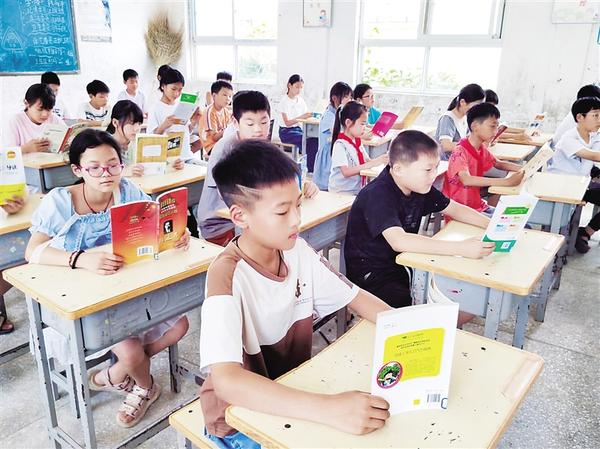 6月26日,学生在阅读心爱的图书。当天上午,市图书馆的流动图书车开到商水县郝岗镇西洄小学。据了解,为延伸全民阅读基层“触角”,让图书馆藏书“动起来”、阅读“热起来”,市图书馆目前在全市设立了48个馆外借阅点,图书每半年更新一次。