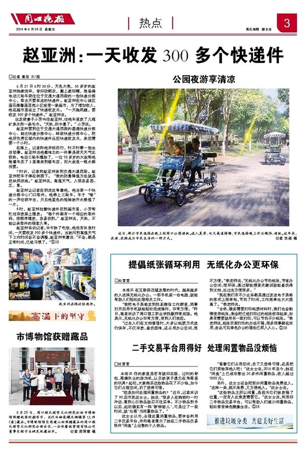 “当然,确实需要打印纸质材料时,我们也会酌情使用纸张。我会把已经打印过的纸张收存起来,如果有需要就用另一面打印,可以节约不少纸张。”李老师说,纸张双面打印的办法不错,很多同事都在采用,由此可见绿色办公的理念已深入人心。②18