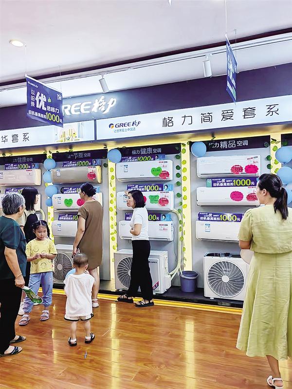 “我家的旧空调用了很多年,制冷效果大不如从前,而且经常出故障。前几天,我听说这里在开展家电以旧换新活动,就想借此机会将旧空调置换掉。”陈女士说,她打算换一台具备远程控制功能、制冷效果好,又节能环保的新空调。