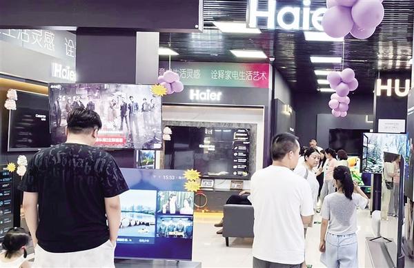 本报讯 日前,记者走访中心城区部分家电卖场发现,随着《周口市推动大规模设备更新和消费品以旧换新工作方案》的出台,我市家电卖场也火爆起来,商家以旧换新优惠活动的“花式宣传”随处可见,市民消费热情进一步被激发。