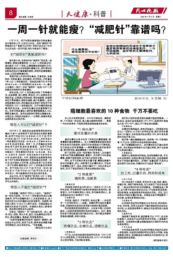 “如果有减重需求和使用‘减肥针’意愿的,请在医生专业评估、指导下注射,循序渐进调整剂量并定期随访,保证用药安全。”专家提醒。