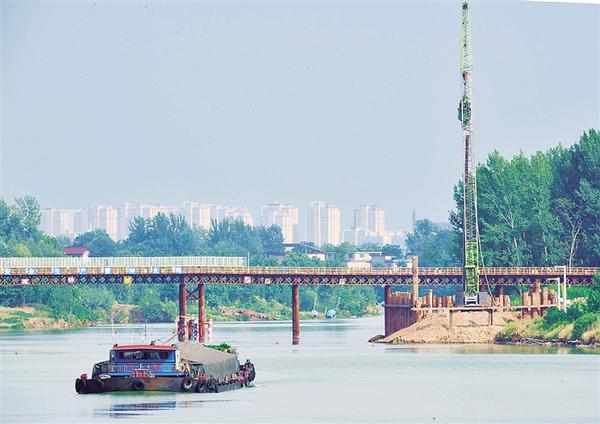 7月2日,作为沙颍河周口至省界航道提升工程的一部分,G329纸店沙颍河大桥开打第一桩。G329纸店沙颍河大桥按照设计主桥采用预应力混凝土变截面连续箱梁,单桥孔双向通航,通航桥孔跨径140米,实际通航净宽为129.5米。记者 梁照曾 摄