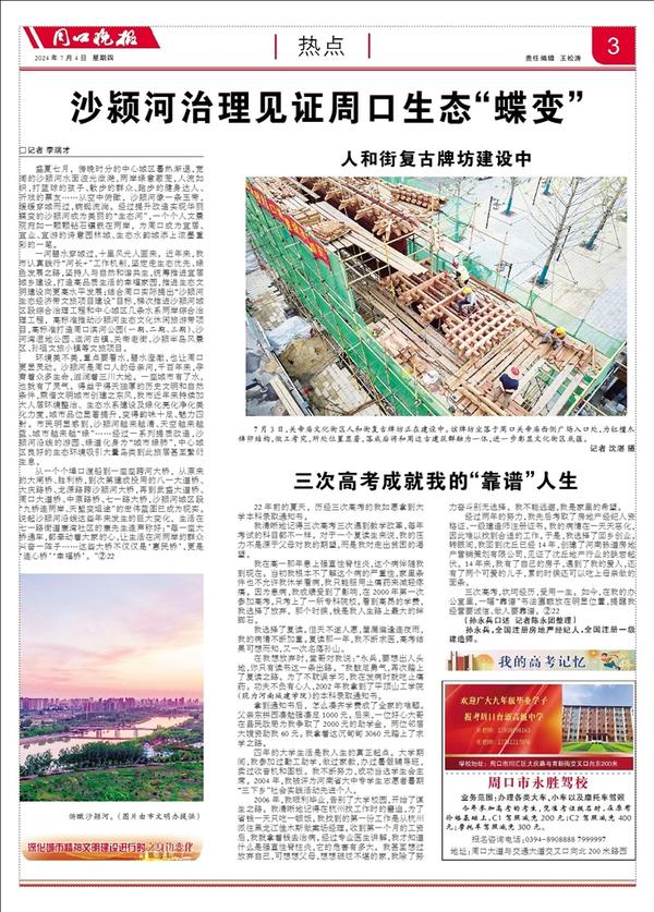 盛夏七月,傍晚时分的中心城区暑热渐退,宽阔的沙颍河水面波光潋滟,两岸绿意葱茏,人流如织,打篮球的孩子、散步的群众、跑步的健身达人、听戏的票友……从空中俯瞰,沙颍河像一条玉带,缓缓穿城而过,蜿蜒流淌。经过提升改造实现华丽蝶变的沙颍河成为美丽的“生态河”,一个个人文景观宛如一颗颗钻石镶嵌在两岸,为周口成为宜居、宜业、宜游的诗意园林城、生态水韵城添上浓墨重彩的一笔。